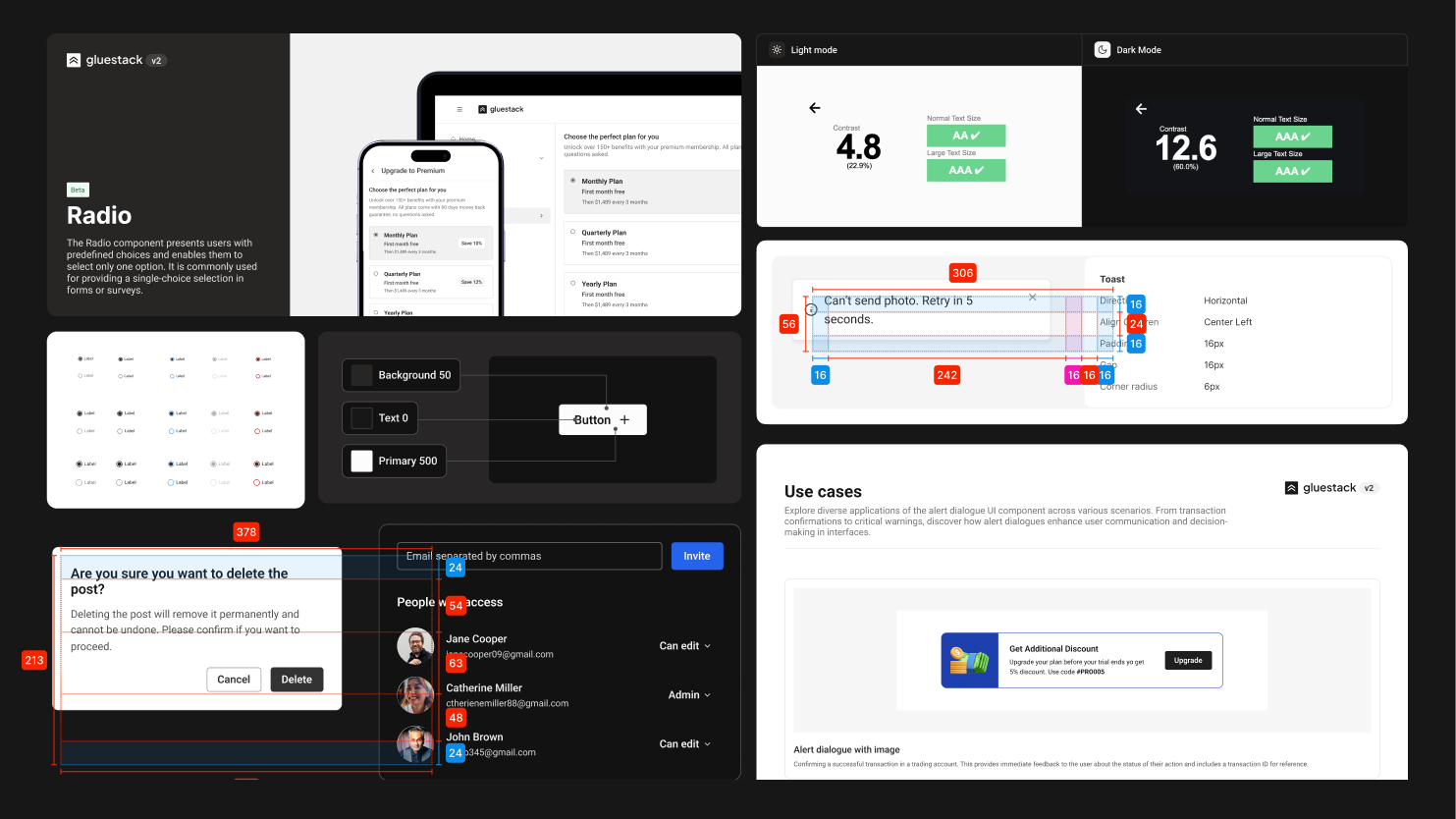• Detailed Documentation: Each component comes with a spec sheet, providing comprehensive information on structuring, properties, dos and don'ts, and use cases. This documentation is invaluable for anyone seeking an in-depth understanding of our design process.